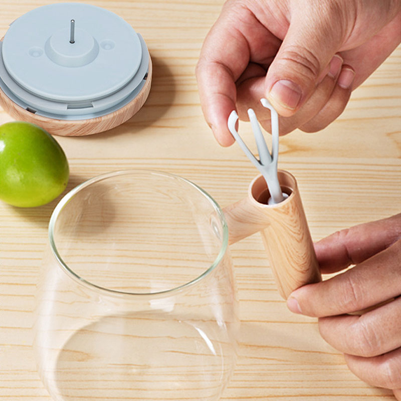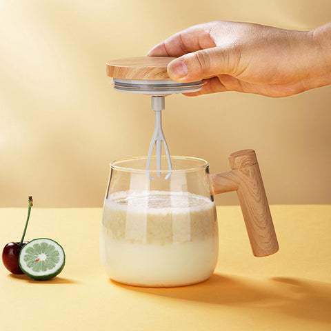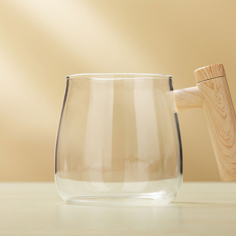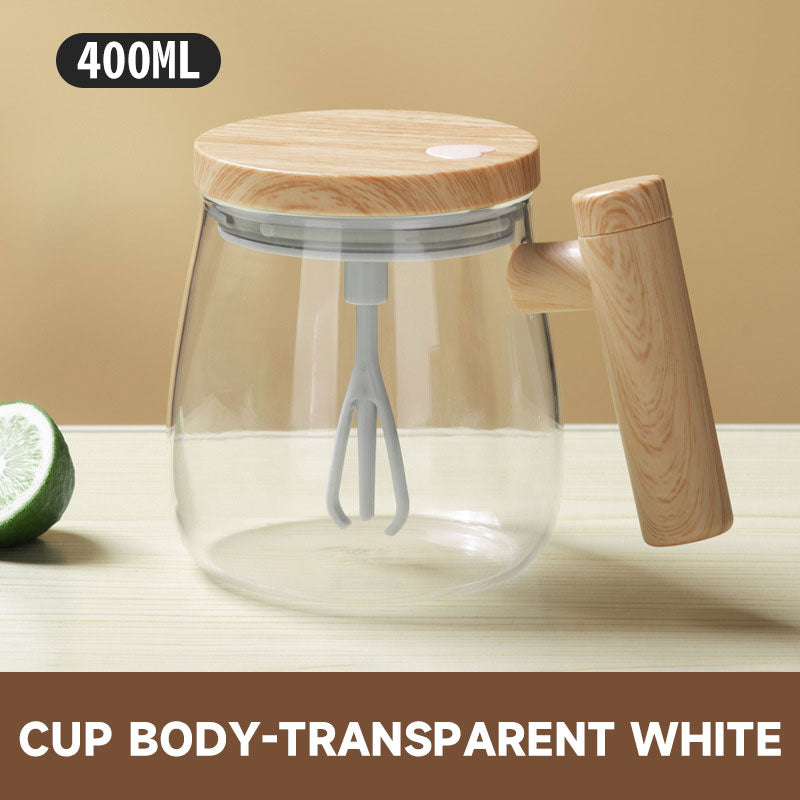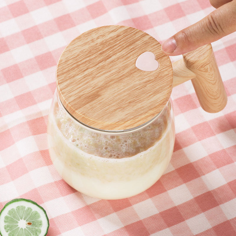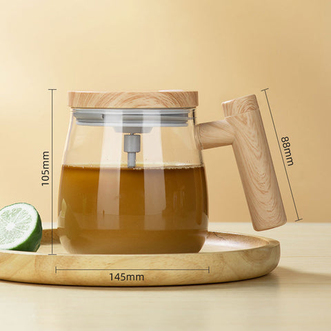 Materiale av høy kvalitet: Den automatiske blandekoppen er laget av borosilikatglass av høy kvalitet, som ikke er lett å knuse når det plutselig avkjøles eller varmes opp raskt. Trehåndtaket og lokket isolerer varmen, hindrer at hendene brenner seg og holder vannet varmt.