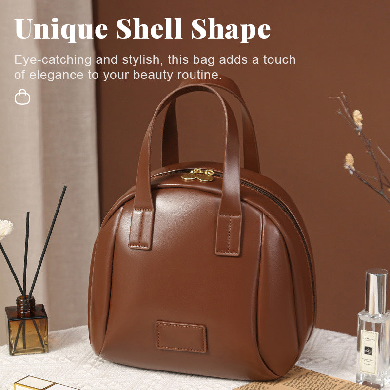 Gjør skjønnhetsrutinen din enda bedre med vår håndholdte sminkeveske med stor kapasitet! Denne søte sminkevesken er designet for å kombinere stil og funksjonalitet, og er perfekt for alle dine skjønnhetsartikler. Den unike skallformen og det romslige interiøret gjør den til et must for enhver sminkeentusiast. Enten du er hjemme eller på farten, holder denne vesken kosmetikken din organisert og lett tilgjengelig.