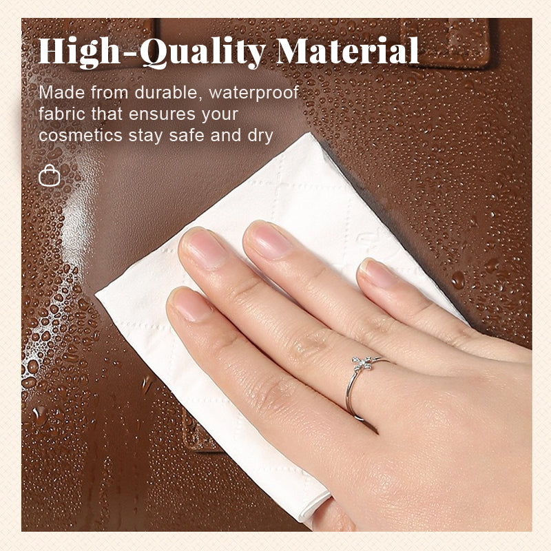 - 💖 Materiale av høy kvalitet: Laget av slitesterkt, vanntett stoff som sørger for at kosmetikken din holder seg trygg og tørr.